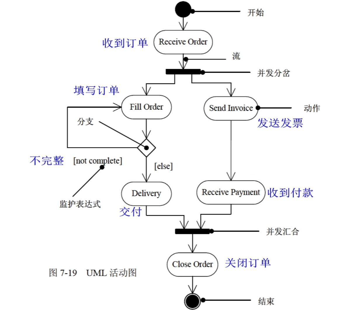 - 活动(动作)可以在状态内执行,也可以在状态转换(迁移)时执行
