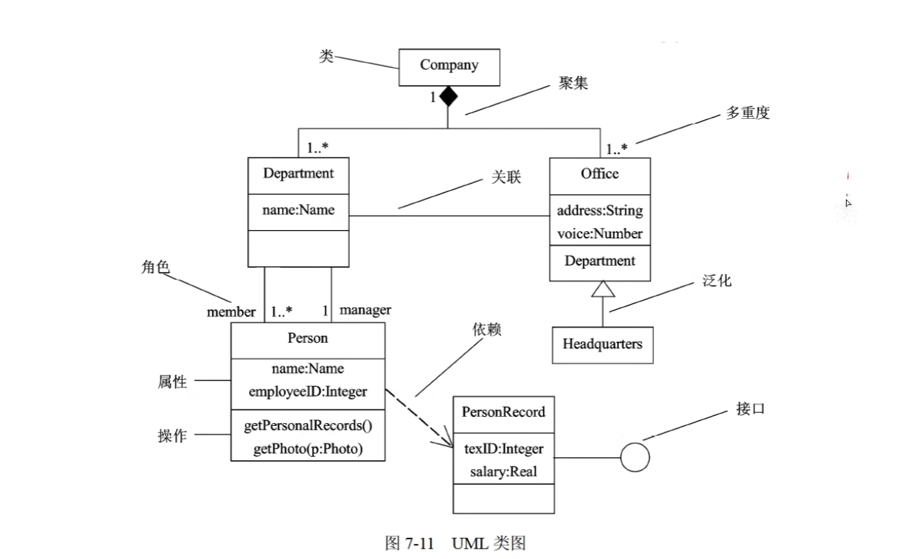 - 通常包括:类、接口(少)、协作(少)、依赖泛化和关联关系